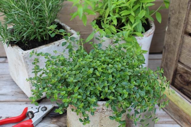 (Nederlands) Aromatische meerjarige groenblijvende kruiden uit de muntfamilie Lamiaceae. Thymes zijn familieleden van het oregano-geslacht Origanum. Ze hebben culinaire, medicinale en decoratieve toepassingen, en de soort die het meest wordt gekweekt en gebruikt voor culinaire doeleinden is Thymus vulgaris. Wilde tijm groeit in de Levant, waar hij wellicht voor het eerst werd verbouwd. Oude Egyptenaren gebruikten tijm om te balsemen. De oude Grieken gebruikten het in hun baden en verbrandden het als wierook in hun tempels, in de overtuiging dat het een bron van moed was. Men dacht dat de verspreiding van tijm in heel Europa te danken was aan de Romeinen, die het gebruikten om hun kamers te zuiveren en om "kaas en likeuren een aromatische smaak te geven". In de Europese Middeleeuwen werd het kruid onder kussens gelegd om te helpen slapen en nachtmerries af te weren. In deze periode gaven vrouwen ook vaak geschenken aan ridders en krijgers, waaronder tijmbladeren, omdat men geloofde dat het de drager moed gaf. Tijm werd ook gebruikt als wierook en tijdens begrafenissen op doodskisten gelegd, omdat het de doorgang naar het volgende leven zou verzekeren. Afhankelijk van hoe het in een gerecht wordt gebruikt, kan het hele takje worden gebruikt (bijvoorbeeld in een bouquet garni), of kunnen de bladeren worden verwijderd en de stelen worden weggegooid. Wanneer een recept "bos" of "takje" specificeert, betekent dit gewoonlijk de hele vorm; wanneer het lepels specificeert, betekent dit de bladeren. Het is volkomen acceptabel om hele tijm te vervangen door gedroogde. (English) Aromatic perennial evergreen herbs in the mint family Lamiaceae. Thymes are relatives of the oregano genus Origanum. They have culinary, medicinal, and ornamental uses, and the species most commonly cultivated and used for culinary purposes is Thymus vulgaris. Wild thyme grows in the Levant, where it might have been first cultivated. Ancient Egyptians used thyme for embalming. The ancient Greeks used it in their baths and burnt it as incense in their temples, believing it was a source of courage. The spread of thyme throughout Europe was thought to be due to the Romans, as they used it to purify their rooms and to "give an aromatic flavour to cheese and liqueurs". In the European Middle Ages, the herb was placed beneath pillows to aid sleep and ward off nightmares. In this period, women also often gave knights and warriors gifts that included thyme leaves, as it was believed to bring courage to the bearer. Thyme was also used as incense and placed on coffins during funerals, as it was supposed to assure passage into the next life. Depending on how it is used in a dish, the whole sprig may be used (e.g., in a bouquet garni), or the leaves removed and the stems discarded. Usually, when a recipe specifies "bunch" or "sprig", it means the whole form; when it specifies spoons, it means the leaves. It is perfectly acceptable to substitute dried for whole thyme. |