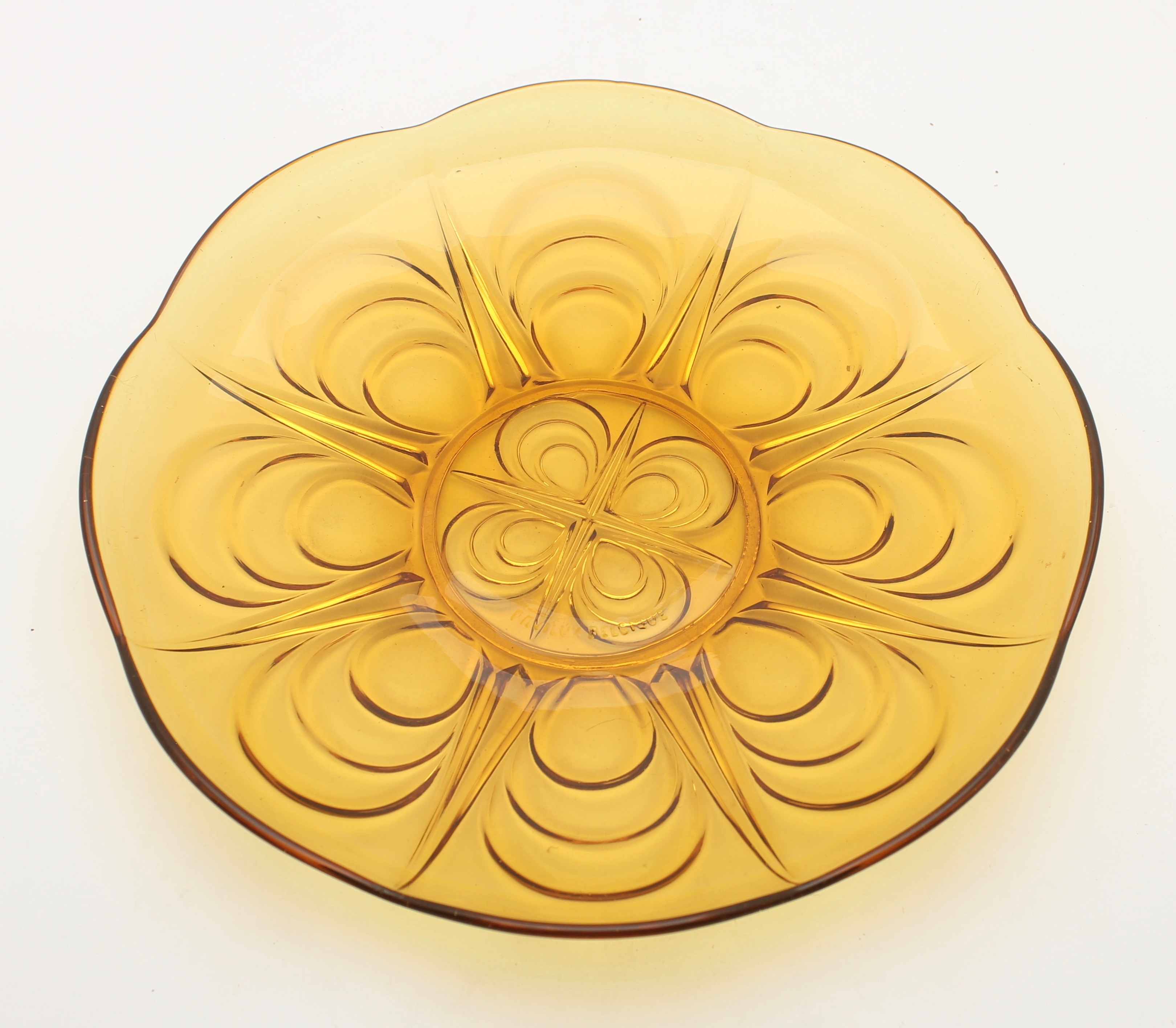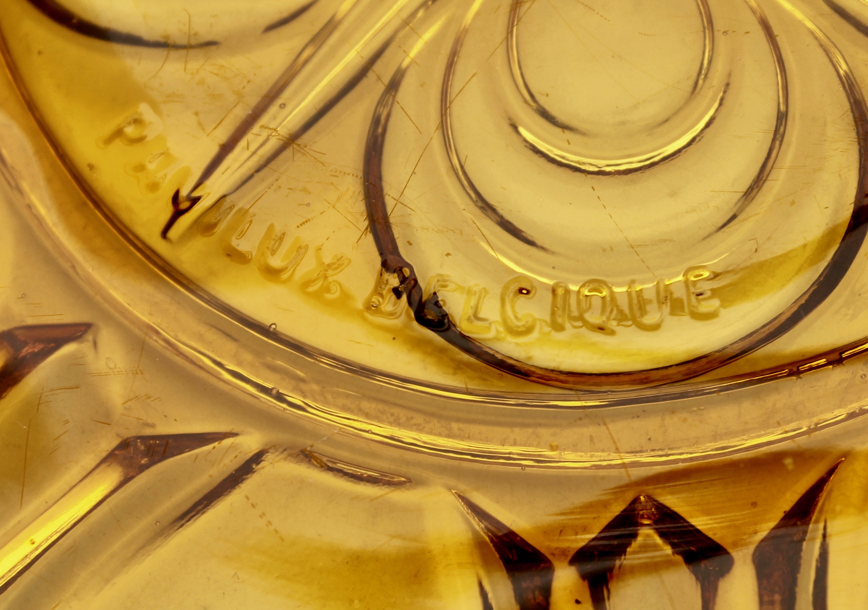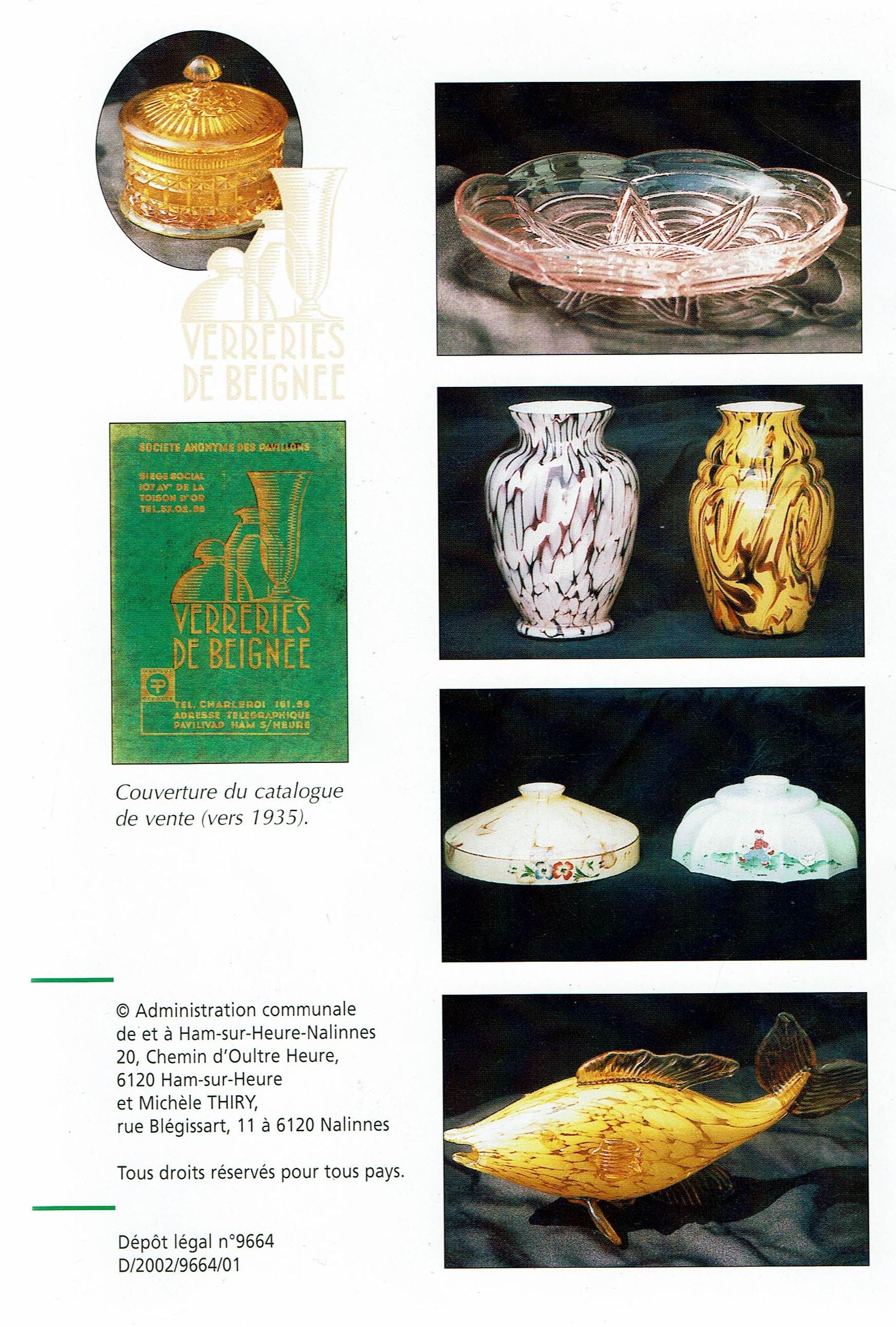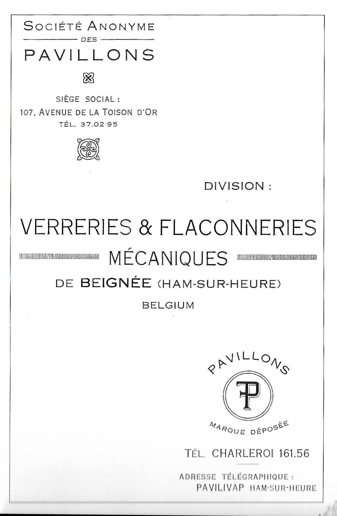 Cristalleries de Manage/Pavillons(Manage, 1880-1973) Gobeleteries & Cristalleries du Centre, a Manage changed their name in 1885 to Cristalleries de Manage and became part of the Pavillons company (who also owned the Verreries de Beignée in Ham-sur-Heure) from 1924-1954. They produced mostly pressed glass and bottles in Beignée, whie Manage focussed on blown-glass and gobleterie. After a slump in 1951, it was sold Durobor in 1954 and continued making blown glass until 1973. Verreries & Bouteilleries de Beignée/Pavillons (Ham-sur-Heure,1922-1957) Founded 1911, became Pavillons in 1922 and then took over Cristalleries de Manage in 1924. Mainly produced pressed glass and bottles in Beignée (while crystal and blown glass was mostly produced in Manage, 25 km away).The site stopped production in 1954. In an article by Michèle Thiry (2002), the registered trademarks include 'Belge', 'VPB Belgique' 'Pavilia', 'Fabrication Belge Garantie' (with P-logo in a round frame), and 'Pavillons - Made in Belgium'. Although the factory is known to have produced pressed glass, there was no information available which allowed collectors to identify examples of their work. Recent research has led to some new discoveries. With help from Pamela Wessendorf and Eliane Bragard we've started to trace items which reveal the range of designs that were made in this factory. It appears that Pavillon's pressed glass was mostly executed at the Verreries de Beignée in Ham-sur-Heure, 25 km south of the sister factory in Manage.It is sometimes marked VPB, PAVILLONS, PAVILIA or PAVILUX. Their identified marks on pressed glass include 'FABRICATION BELGE' and 'BELGE' which had been noted as a common and hithertoe puzzling mark as well as FAIT EN BELGIQUE and MADE IN BELGIUM . It is not yet clear how many other patterns from our 'Belge Marks' page we will be able to move onto this page as the history unfolds. The patterns shown on this page have also been identified from literature and/or have marks which clearly identify them. |